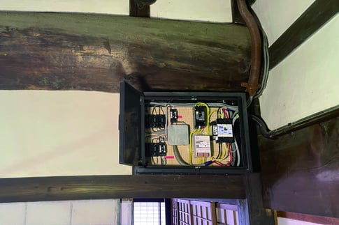 この貴重な遺産を災害から守るために、 電気火災の引き金となる火花放電を検出する「放電検出ユニット(スパーテクト)」と地震時にブレーカを自動遮断する「感震ブレーカー」が採用されました。