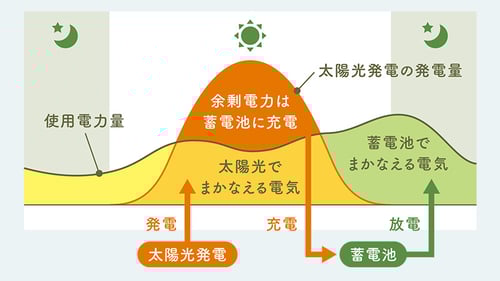 大規模なシステムを構築することなく、自社設備のみでさまざまな動作が可能です。太陽光発電の余剰電力を施設ごとの需要に合わせて効率よく充放電。緊急時の対策としても役立ちます。