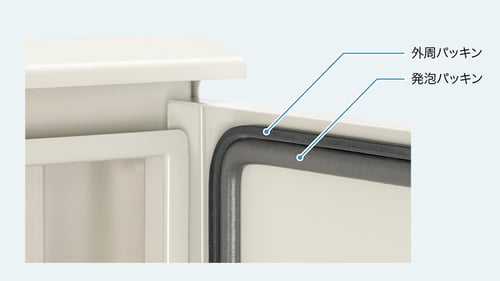 風雨性能継ぎ目のない発泡パッキンと外周パッキンの2重パッキ ン構造により、業界最高レベルの風雨性能(WP50H: 風速50m/s)、IP性能(IP66)を実現しています。